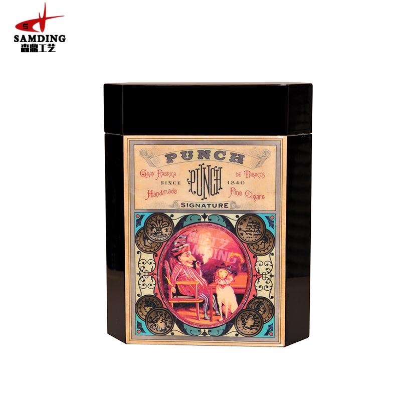 雪茄盒木質包裝利用高清貼相紙工藝,讓其圖形更加入目,產生強烈的視覺沖擊力,為視覺的傳達開拓更加嶄新的空間。